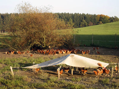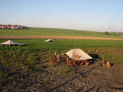Nach der Hauptlegezeit am Morgen lassen wir die Hühner hinaus auf die 10.000 m²große